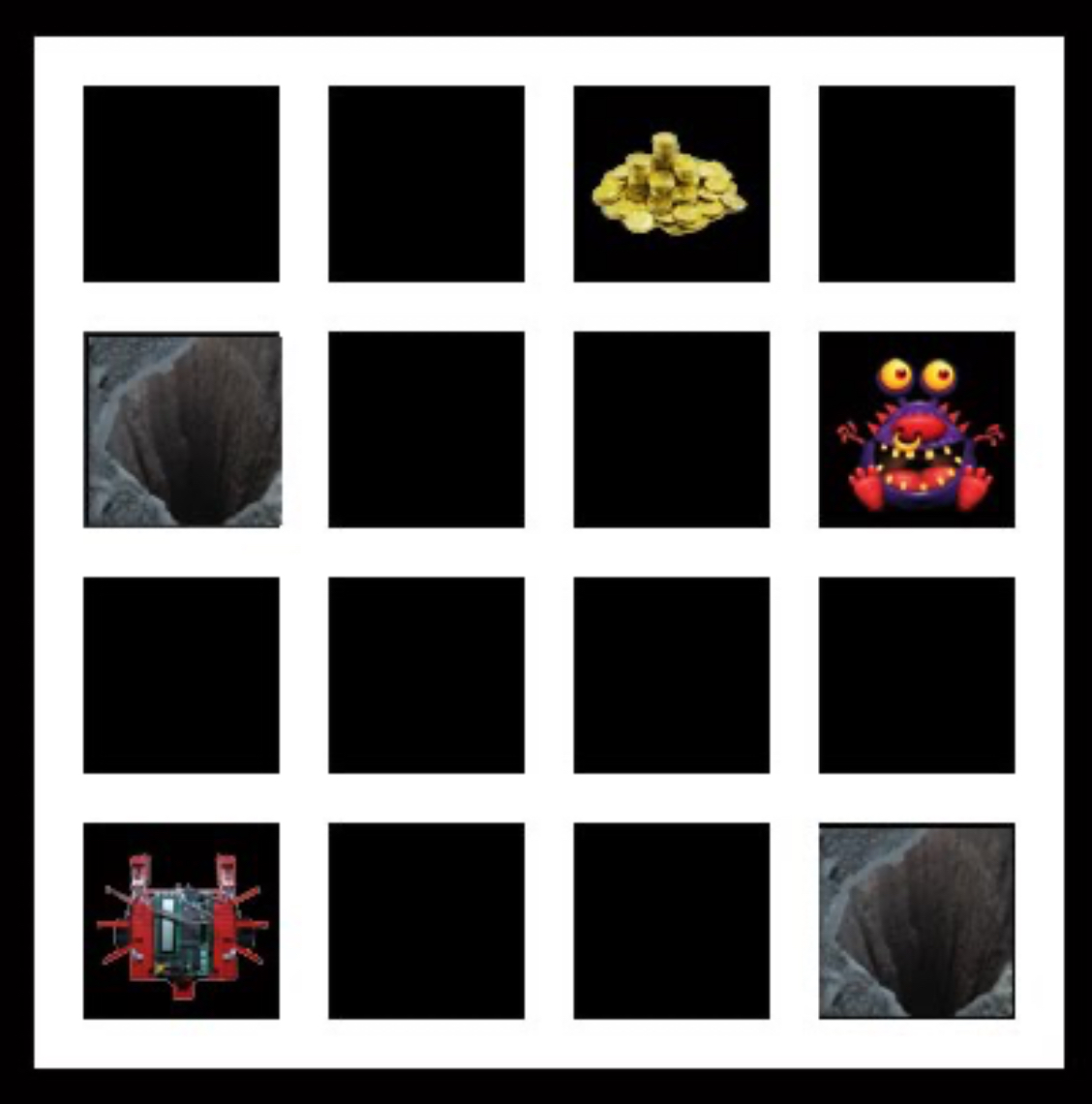 The Goal of this game is to navigate a robot equipped with one arrow around a 4X4 board in order to collect some gold and return to the starting position.
